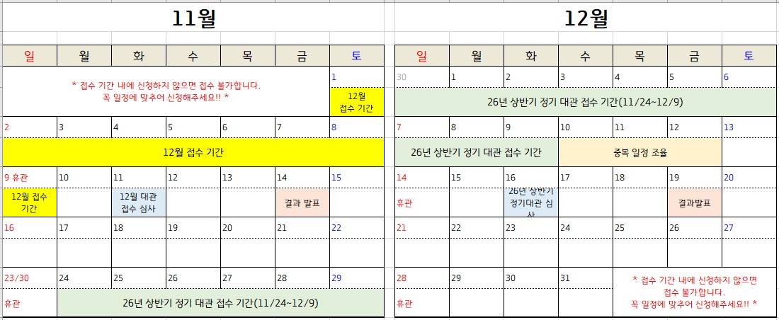 26년 일정표는 11월 게시예정