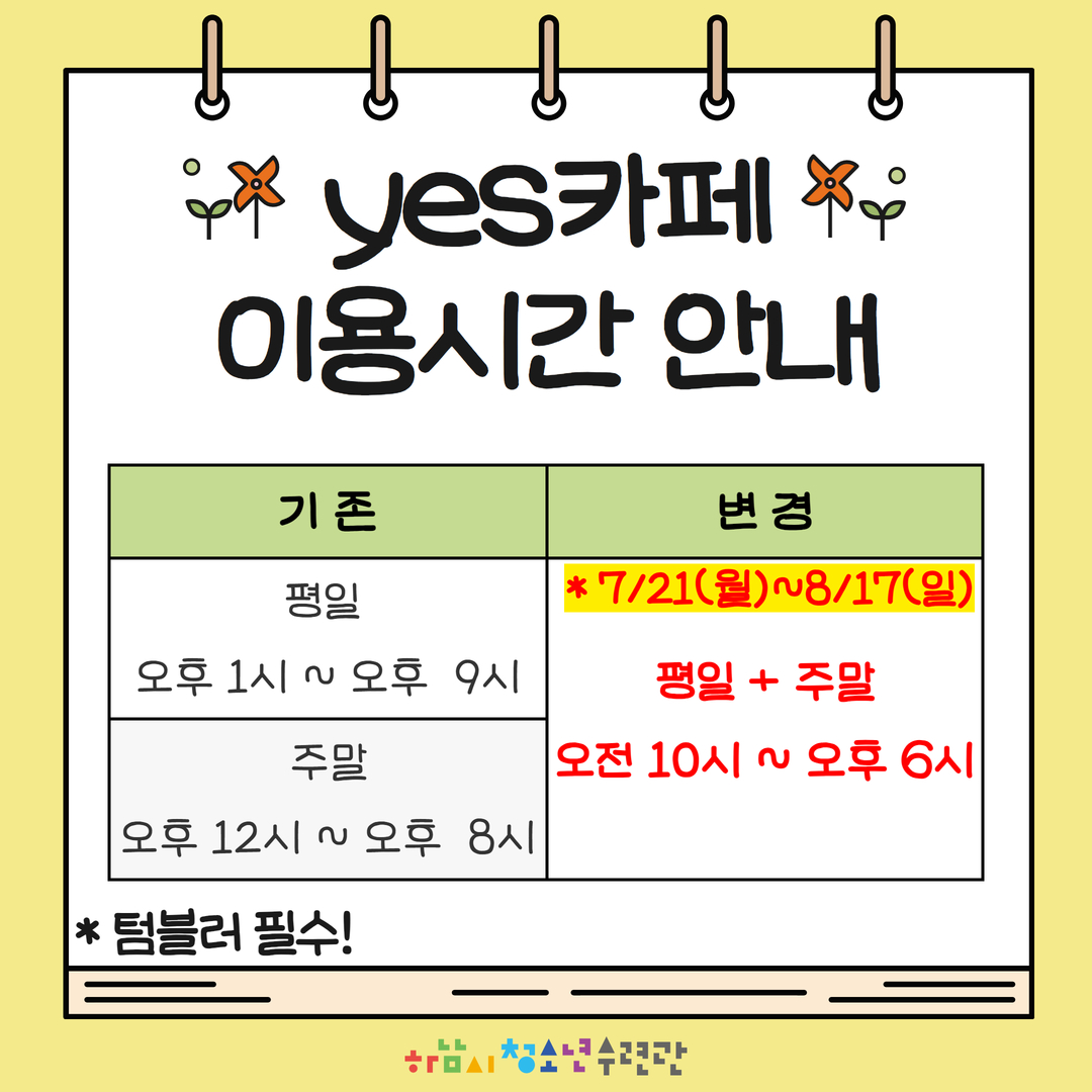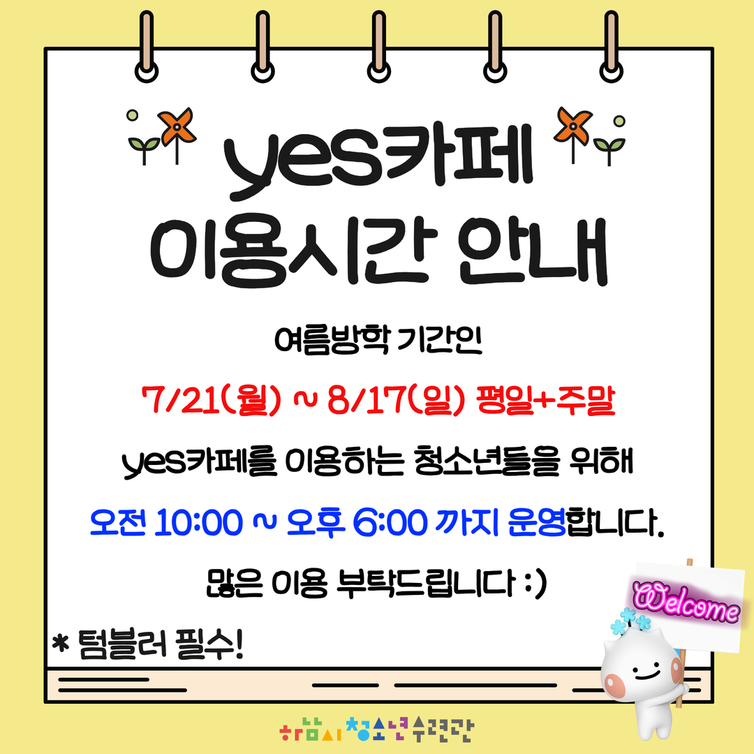 [안내]YES카페 여름방학 운영시간 변경 안내(7.21~8.17)