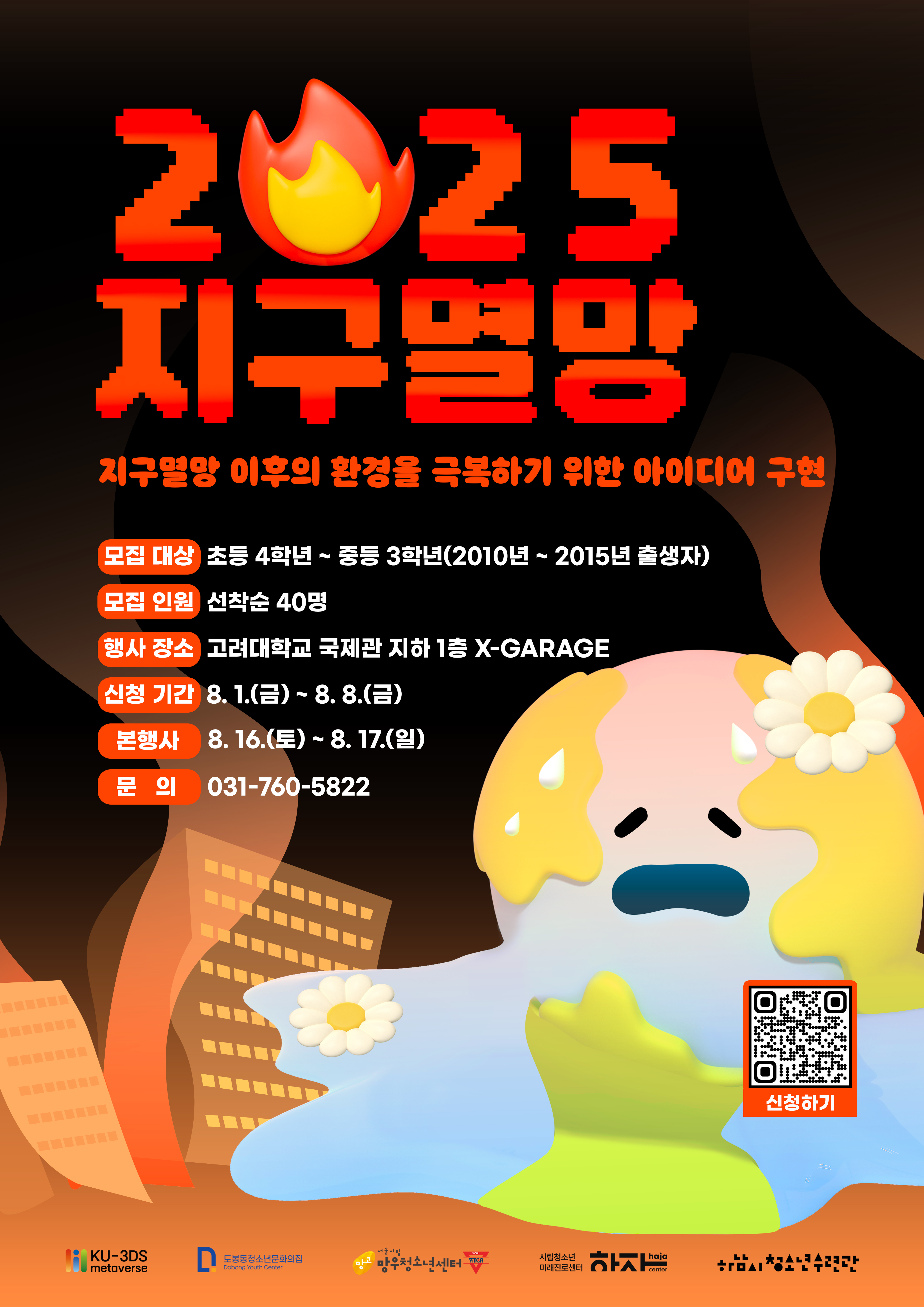- 참가자 혜택 : 전일정 모두 참여한 청소년에게는 고려대학교 수료증과 기념품이 제공됩니다.