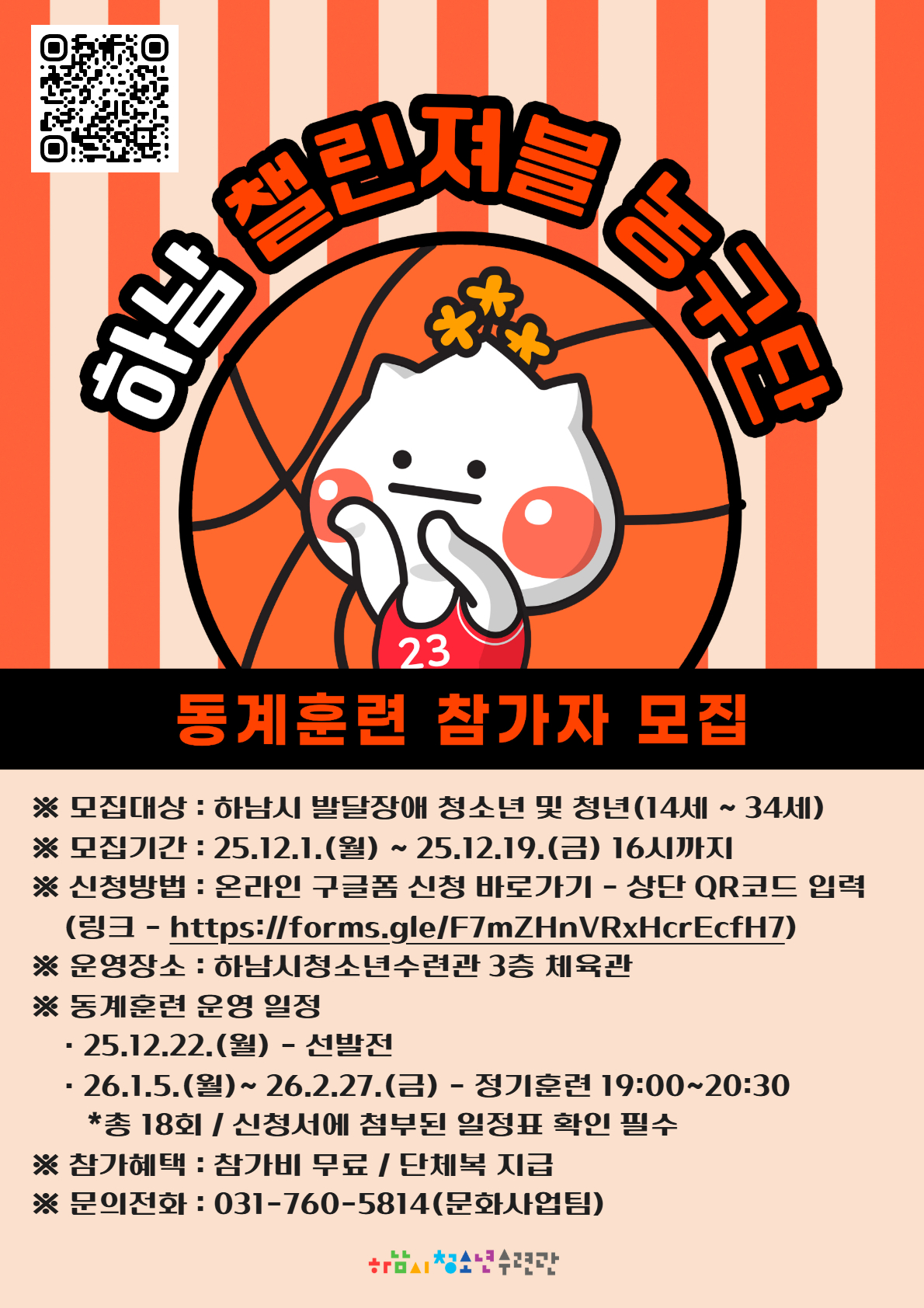 - [모집] 하남챌린져블 농구단 동계훈련 참가자 모집 (~12/19까지)