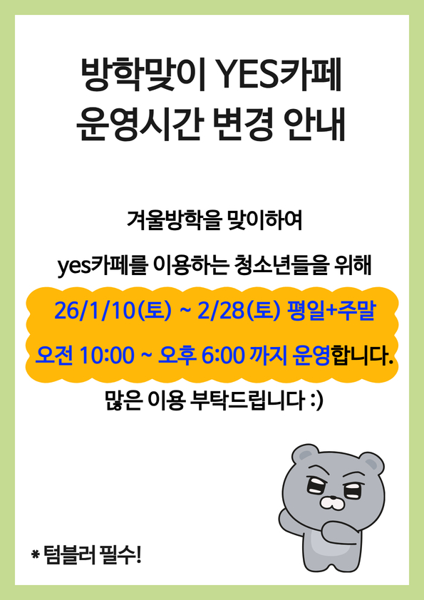 [안내]방학맞이 YES카페 운영시간 변경(1/10~2/28)