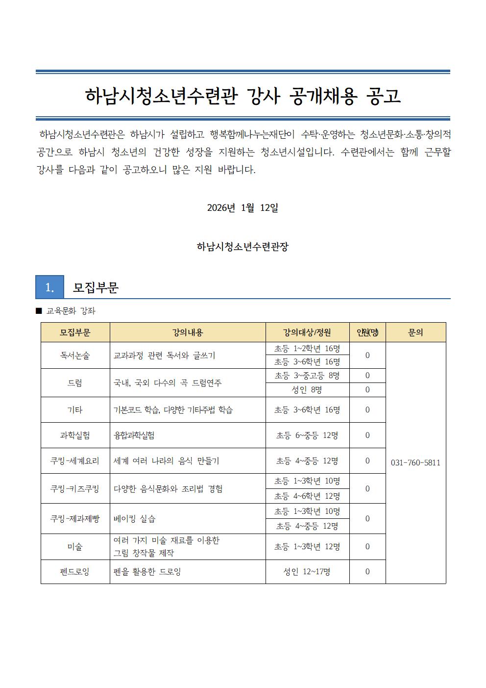 [모집]2026년 1차 강사 공개채용 공고(~1/22(목) 20시까지)