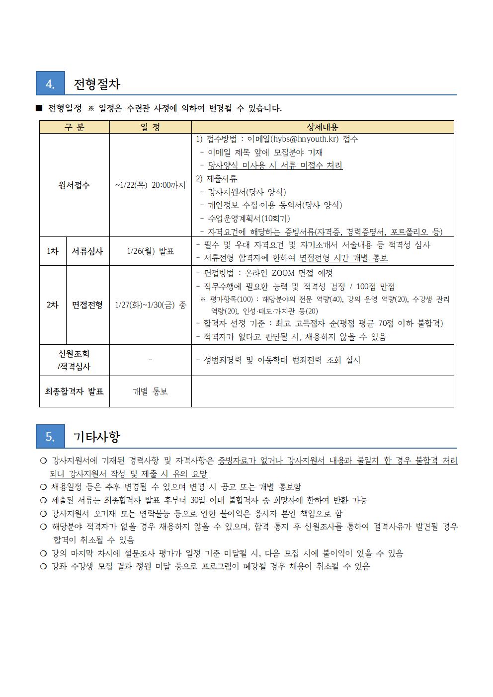 ** 제출서류 : 강사지원서, 개인정보이용동의서, 수업운영계획서