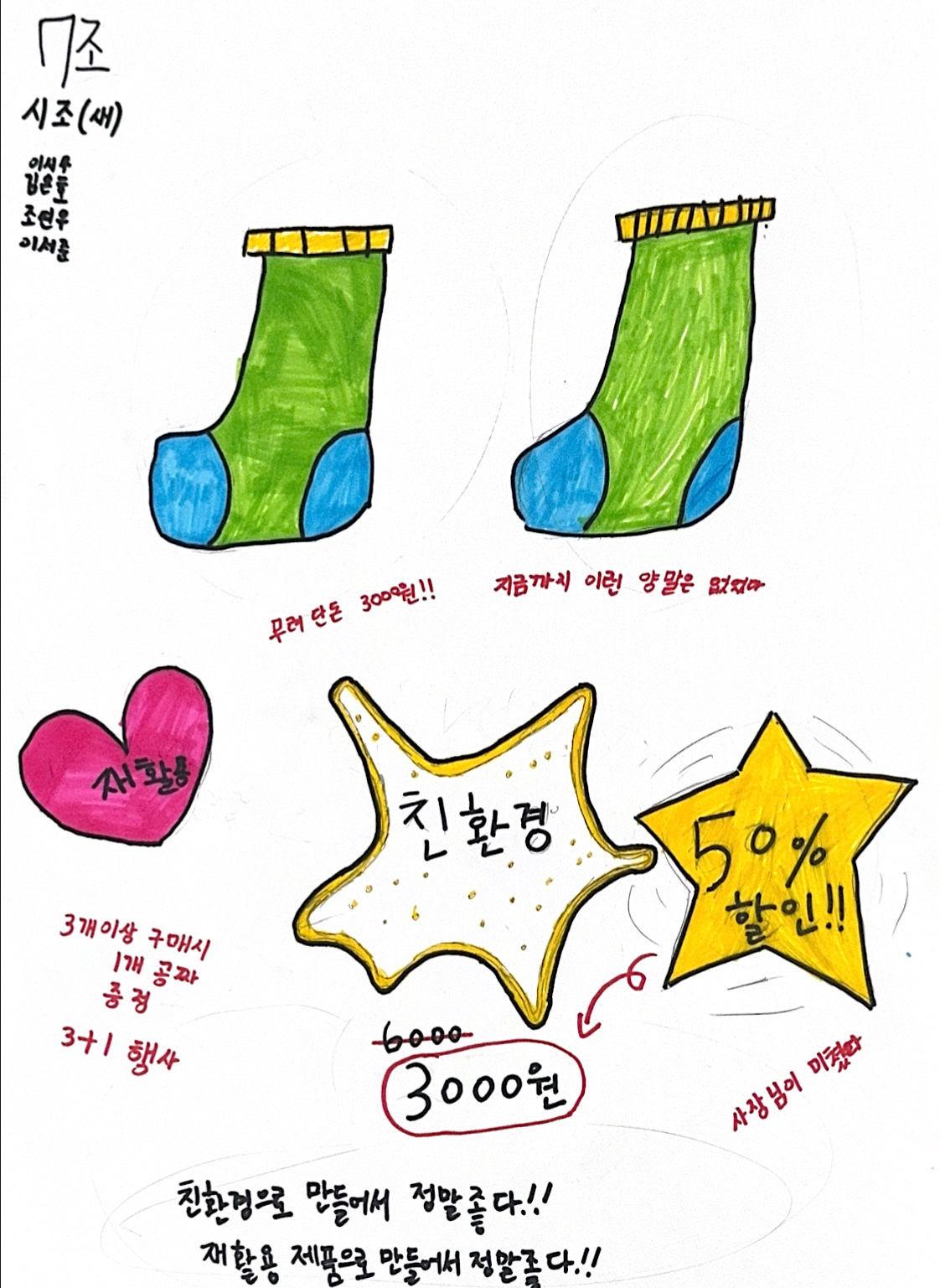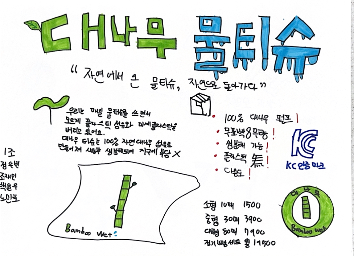 조사한 자료들을 바탕으로 조별로 친환경기업 및 친환경제품을 구상해보고 기업홍보문도 제작해보았습니다!