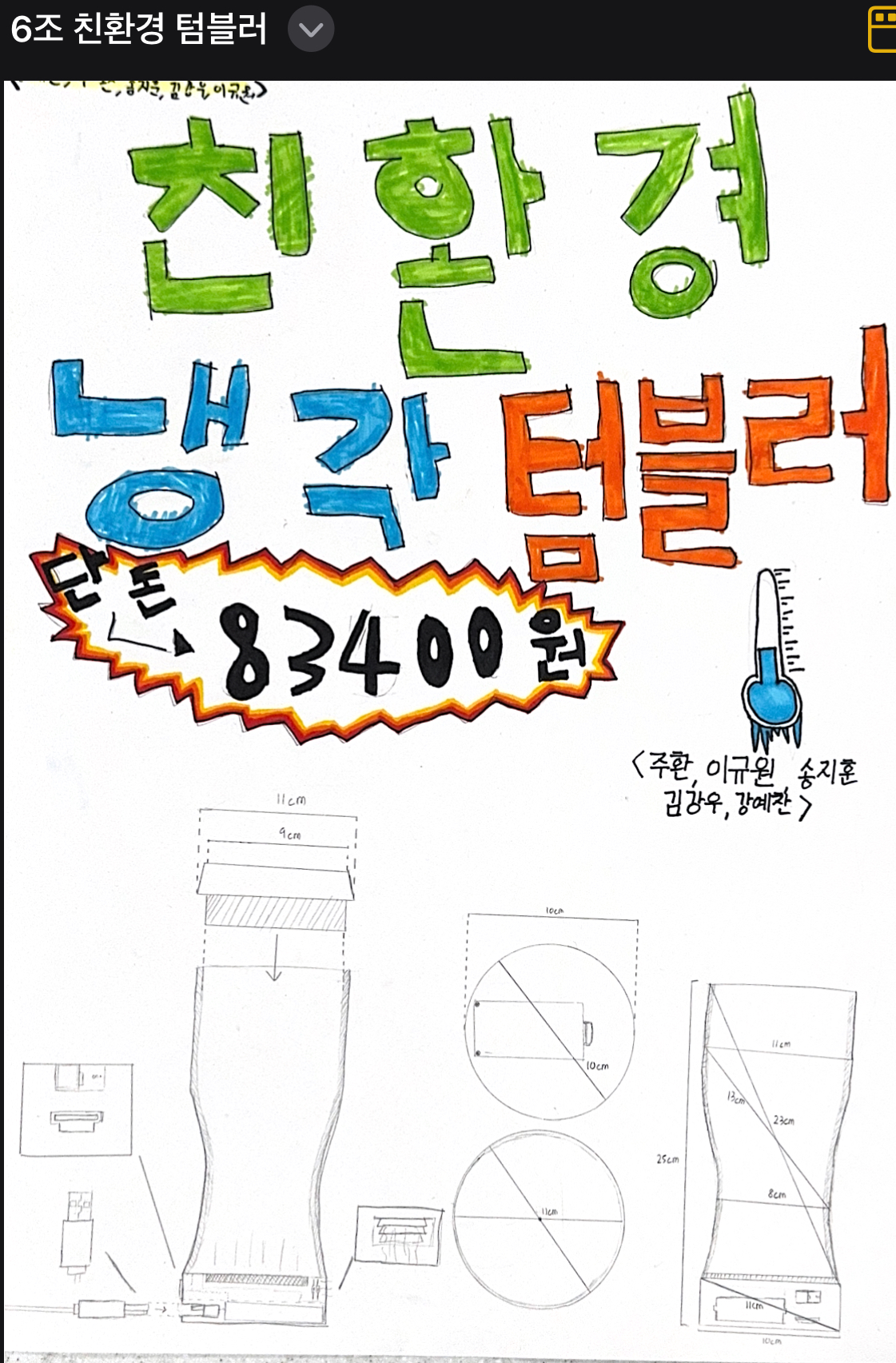 6. 기업명: 친환경 냉각 텀블러 / 주력사업: 냉각 텀블러 / 제품 설명 및 기대효과: 충전단자를 활용하여 사전에 충전해놓으면 계속해서 냉감을 유지할 수 있음.