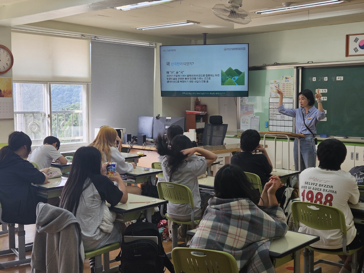 학교 근처에 있는 하천의 이름은 무엇인지, 또 그 이름이 가지고 있는 의미는 무엇인지 함께 이야기나눠보는 시간도 있습니다.
