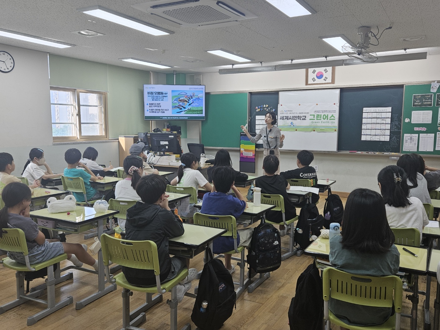 그린어스(Green Earth-Us)는 2025년 초등학교 4학년부터 6학년을 대상으로 운영되었으며, 6개의 초등학교·총 49개 학급과 함께 수업을 진행하였습니다.