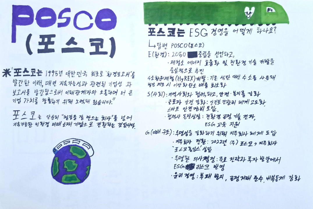 SDGs 7번 '모두를 위한 깨끗한 에너지' 목표 달성을 위해 ESG(환경·사회·지배구조) 경영을 실천하는 기업 분석 보고서를 작성하는 활동도 펼쳤습니다.